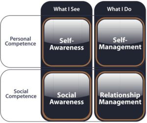 Emotional intelligence is the “something” in each of us that is a bit intangible. It affects how we manage behavior, navigate social complexities, and make personal decisions that achieve positive results. Emotional intelligence is made up of four core skills that pair up under two primary competencies: personal competence and social competence.